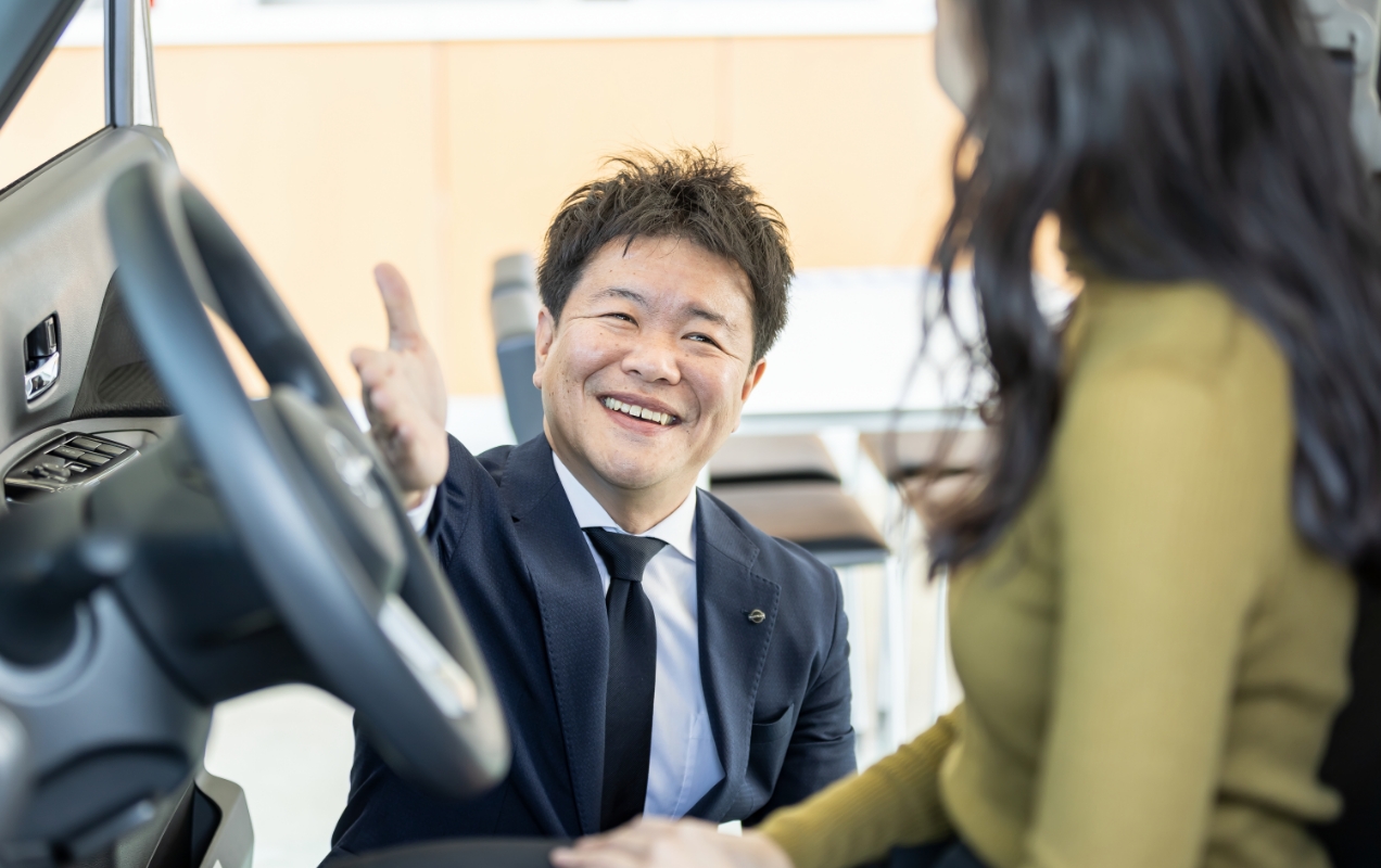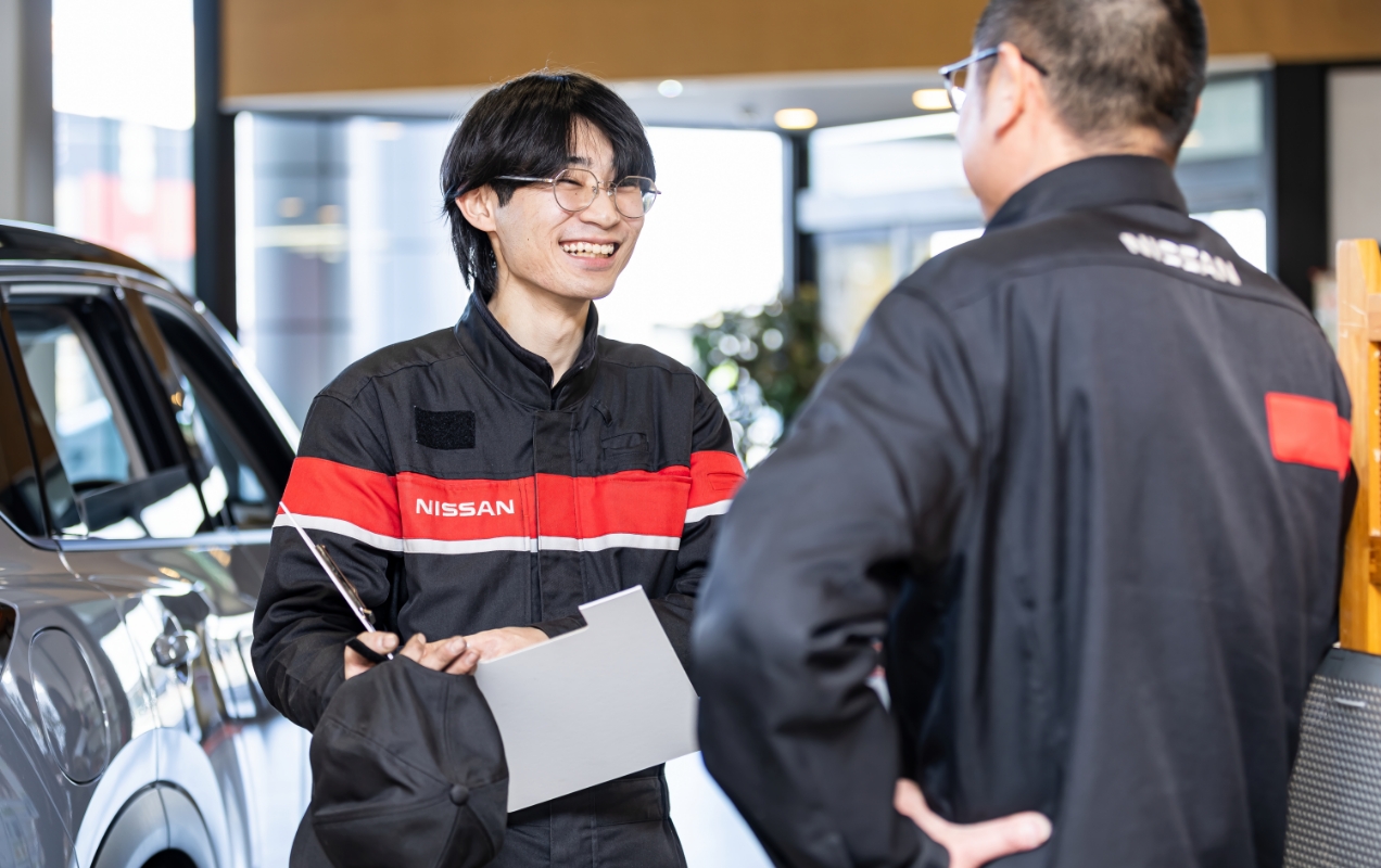 日産グループの社員一人ひとり、販売店で働くあなたの顔が、日産の顔になります。 お客さまの話を真剣に聴き、クルマを整備し、ご満足いただけるおもてなしと最適なご提案をする。そのすべての顔が、あなたの住む街のお客さまから「ありがとう」の言葉をいただけることにつながり、それが地元の貢献につながります。